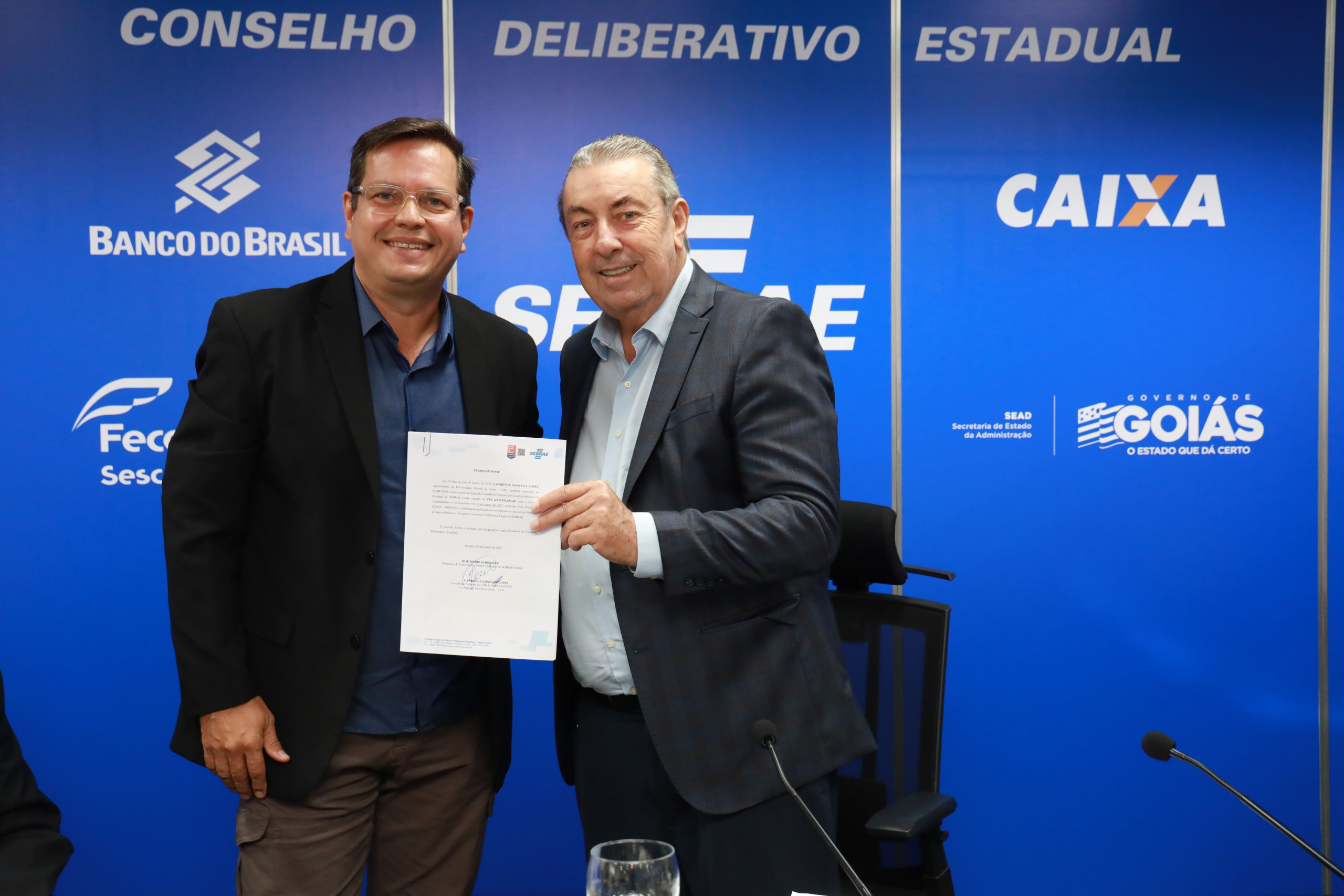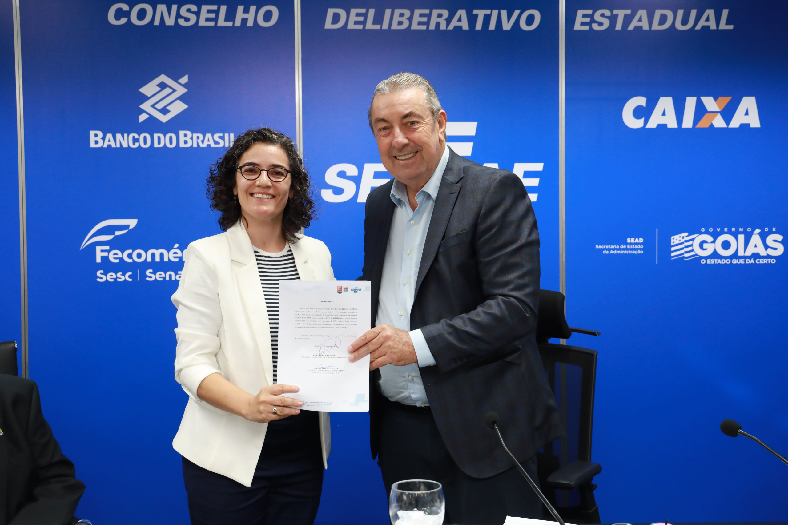 Ao final, o presidente José Mário empossou os novos membros do Conselho. Pela Universidade Federal de Goiás (UFG), assumiram a titular Camila Cardoso Caixeta, vice-reitora da instituição, e o suplente Lawrence Gonzaga Lopes. O conselheiro Wellington Matos, anteriormente suplente da SEAD, tomou posse como titular da pasta.